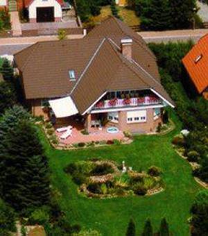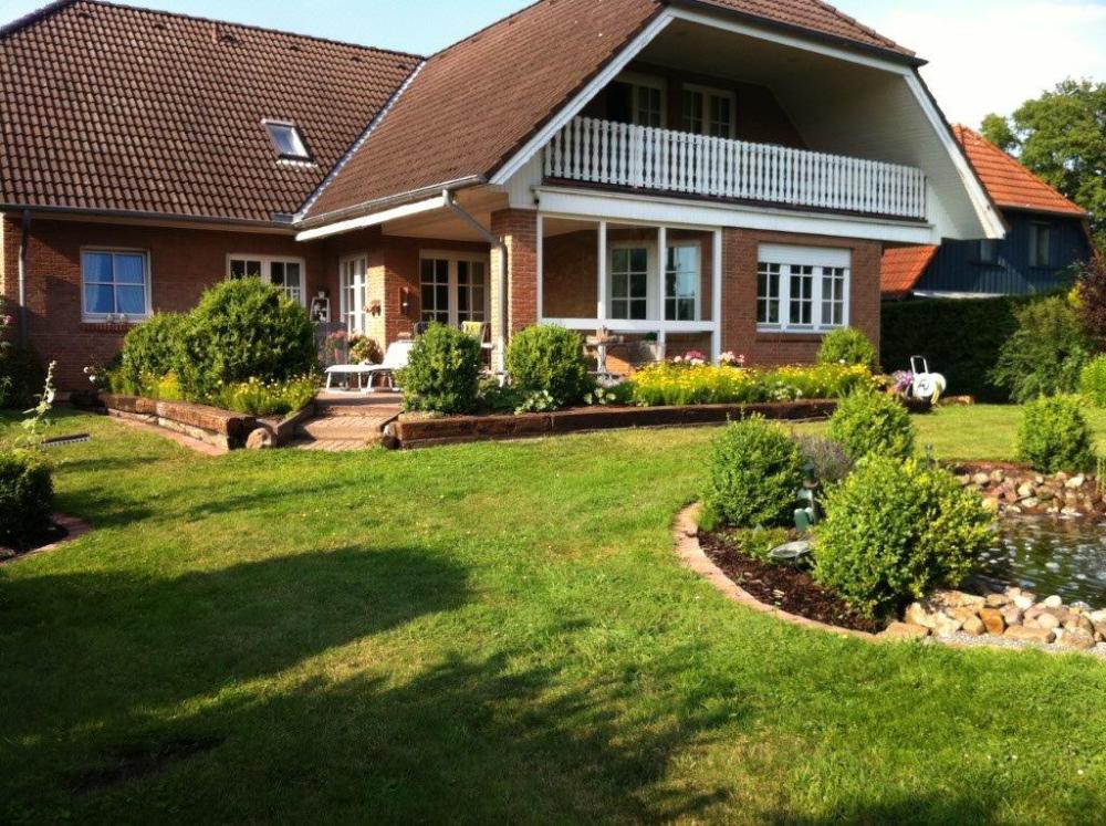 Wer das aussergewöhnliche sucht ist hier genau richtig! Das zur Zeit als Zweifamilienhaus genutzte Gebäude im Landhausstil läßt keine Wünsche offen. Angefangen vom voll ausgebauten Keller mit Sauna-, Fitness- und Ruheraum, ist das Haus in den Etagen mit hochwertiger Kupfer-Fußbodenheizung versehen.Die doppelverglasten Holzfenster sind dem Hausstil mit Sprossen angepasst. Im kaufpreis sind je Etage hochwertige Massiveinbauküchen mit modernen Geräten enthalten. Terrasse und Loggia sind großzügig gehalten und garantieren einen wunderschönnen Blick in die Landschaft und den schönen Garten mit seinem Teichensemble. Die Dreifachgarage kommt einem kleinen Haus gleich und bietet ebenfall viel Platz für Fahrzeuge und Gerät, die über den ca. 100m² gepflasterten Hof zu erreichen ist. Selbstverständlich mit elektrischem Torantrieb und Sektionaltoren. Rolläden sind teilwese ebenfall elektrisch steuerbar.